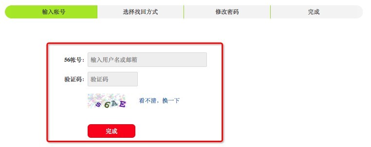 1、如果您的账号有绑定邮箱地址,进入找回密码页面(https://v4.passport.sohu.com/fe/login),输入56用户名或邮箱地址,按照流程提示重设密码。