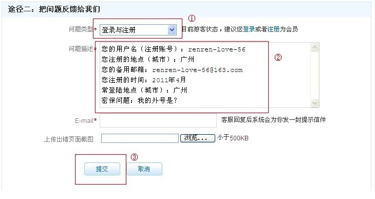 3.2、按照以下格式在问题描述中提交您的基本信息(请尽量填写完整,这样有助于我们更好的帮您解决问题哦):