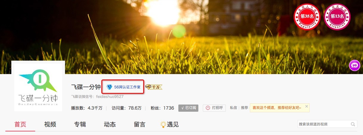 个人认证:56认证导演、56城市拍客、56红人、56达人;