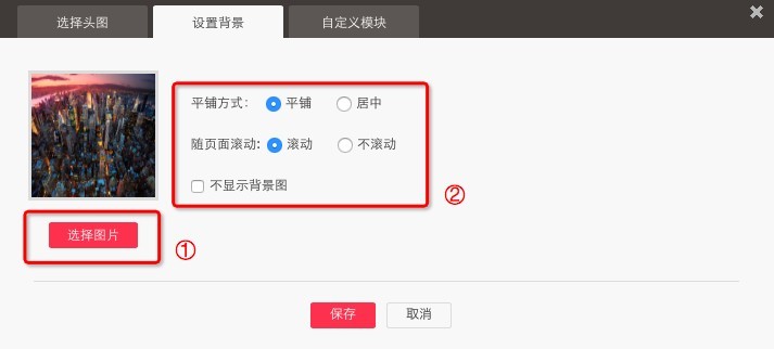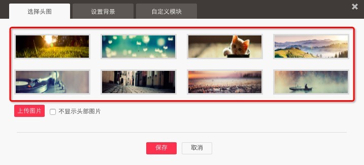 ①选择系统默认头图。系统默认提供8张头图,鼠标选中图片,点击“保存”。