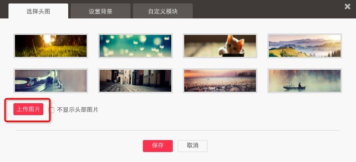 ②上传电脑上的图片作为头图。点击“上传图片”选择一张电脑里面的图片,点击“保存”。