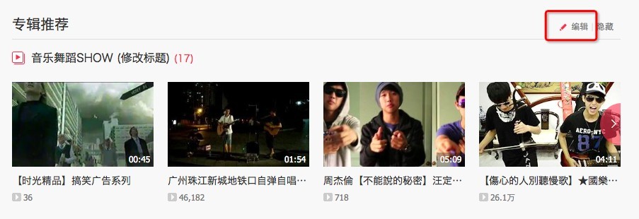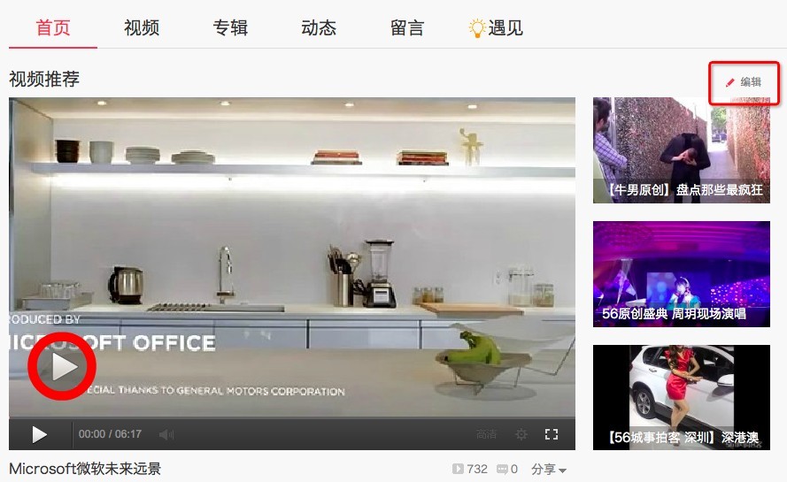 5.1、进入您的空间主页,点击视频推荐模块右上角“编辑”入口。