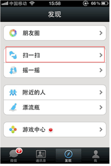 1、点击微信下方的“发现”,选择“扫一扫”: