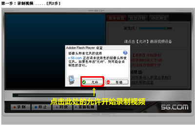b).点击“录制新视频”后,在弹出的Flash Player设置中单击“允许”。开始检测摄像头。